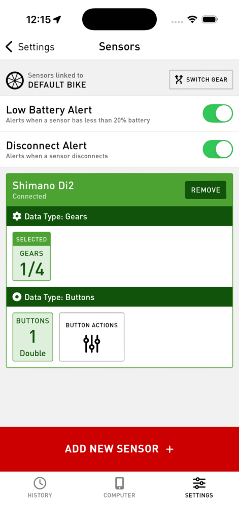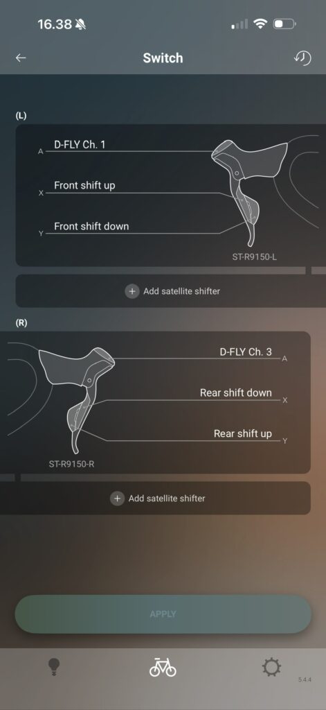 After you’ve assigned each button, exit and force quit the E-tube app. That will disconnect the Di2 system from the E-tube app and allow you to connect it in Cadence.